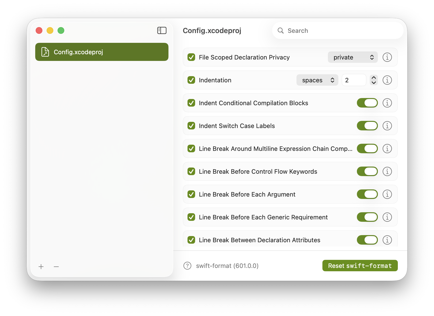 Because it’s an Xcode companion, quietly stalking your .swift-format file to reflect changes instantly. It just works better that way. You really should enable it, seriously, you should. But it’s not mandatory, live dangerously if you want.